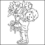 Desenho do menino com um buquê de flores para colorir
