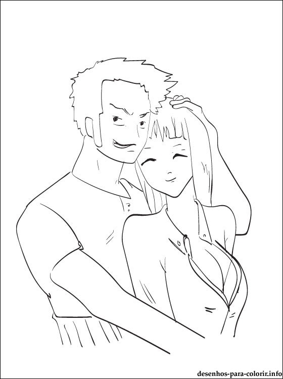Desenho de Zoro e Nico Robin de One Piece anime para baixar e colorir. Imagem de anime One Piece com Nico Robin e Zoro para imprimir e pintar gratis, para os fãs de ficção.