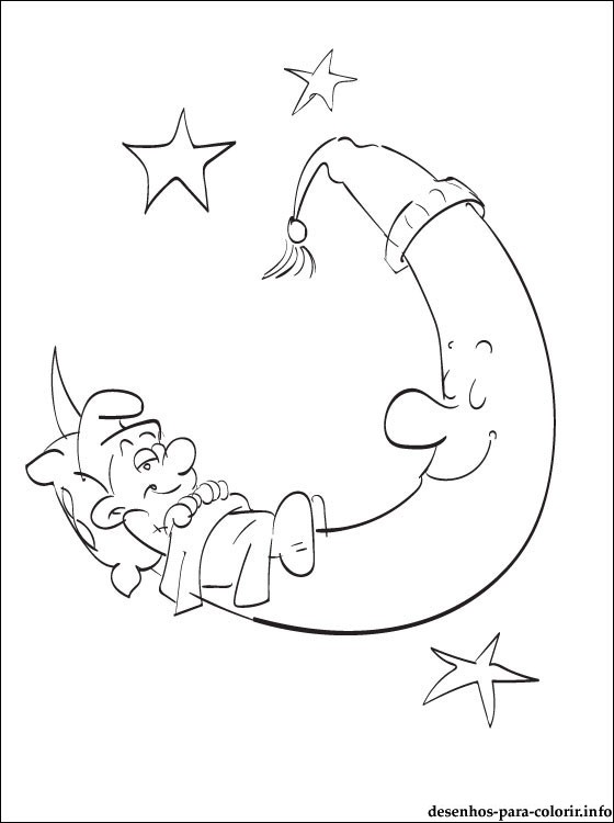 Desenho do Boa noite, Smurfs imprimir em impressora e colorir com giz de cera para infantil.