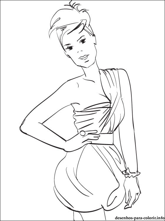 Desenho do Rihanna no vestido bonito de pintar e imprimir para os fãs.