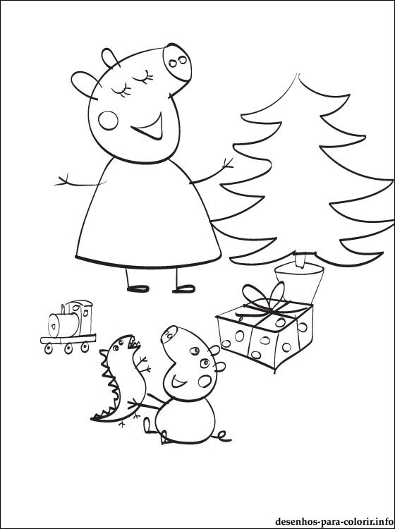Este desenho para colorir está publicado na seção: Natal / Ano Novo, Peppa Pig