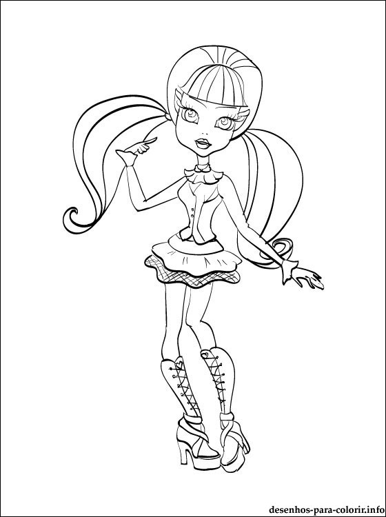 Um desenho de Draculaura de Monster High para colorir no computador. Uma imagem de Draculaura para imprimir e pintar gratis para meninas, aqueles que amam bonecas Monster High.
