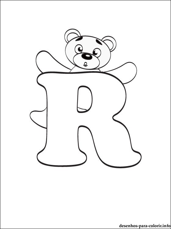 Teddy Bear / Ursinho com Letra “R” desenho para colorir e imprimir.