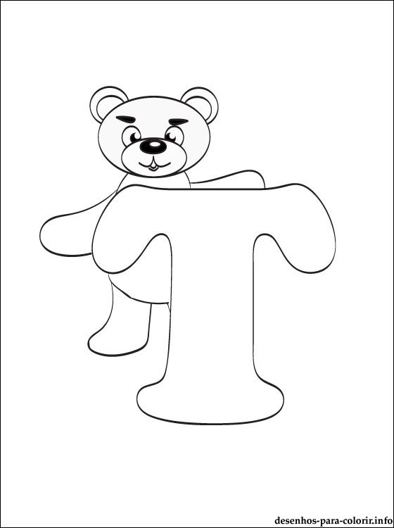 Teddy Bear / Ursinho com Letra “T” desenho para colorir e imprimir.