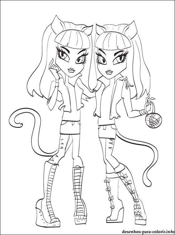 Desenho de Purrsephone e Meowlody de Monster High para baixar e colorir. Imagem infantil de Purrsephone e Meowlody para imprimir e pintar gratis, para os fãs bonecos Monster High.